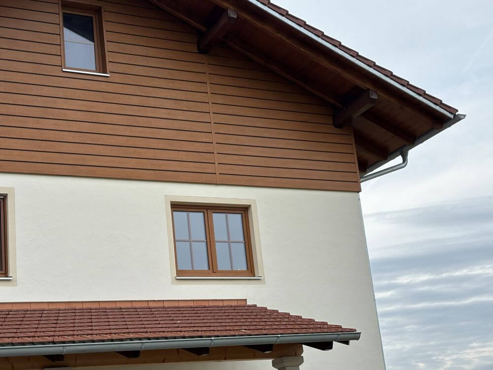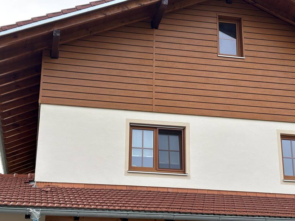 Fassade mit Alu-Eckprofil 1725 Rustic Cherry